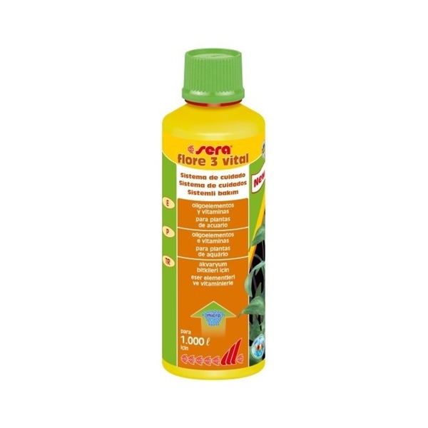 SERA Flore 3 vital je rastvor elemenata u tragovima i vitamina koji pomaže izdržljivost svih vodenih biljaka. Upotrebljva se 5ml na 20 lit.vode.