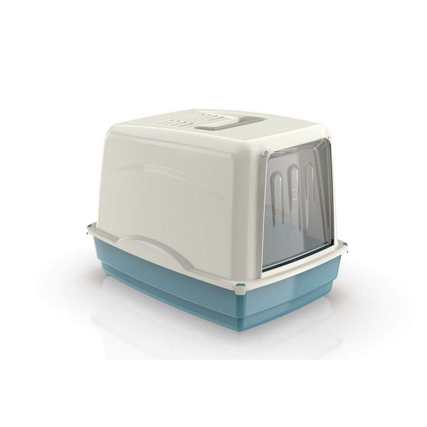 Georplast Vicky toalet za mačke je zatvorenog tipa, dizajniran da obezbedi maksimalnu higijenu i diskreciju. Posjeduje veliki ulaz sa vratima, što olakšava pristup mački i smanjuje prosipanje posipa. Zahvaljujući poklopcu i ugrađenom filteru, toalet efikasno zadržava neprijatne mirise, čime se održava svežina u prostoru. Izrađen je od kvalitetne plastike i dostupan u više boja.