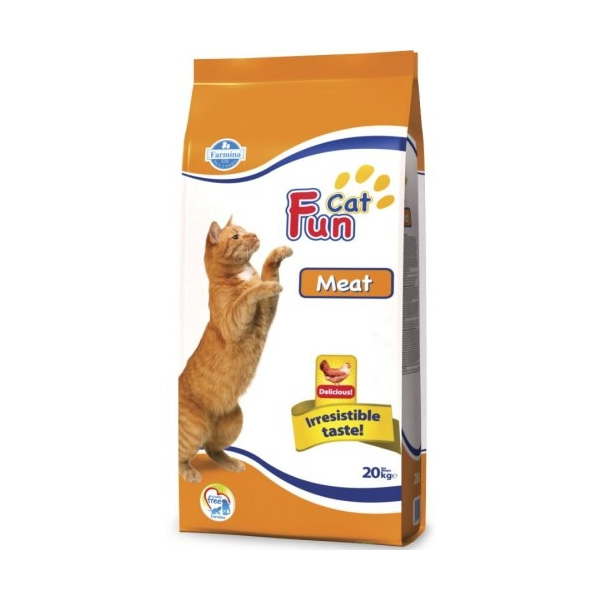 Fun Cat Meat je kompletna hrana za odrasle mačke sa normalnim nivoom fizičke aktivnosti. Ona potpuno zadovoljava sve glavne nutricionističke zahteve za zdrav i uravnotežen režim ishrane. Sadrži ribu, piletinu i govedinu za energiju, što garantuje lako svarljiv protein. Fun Cat Meat je visoko pogodna za izazivanje apetita i sadrži sve vitamine i elementi koji su neophodni da zadovolje nutricione potrebe vaše mačke.
