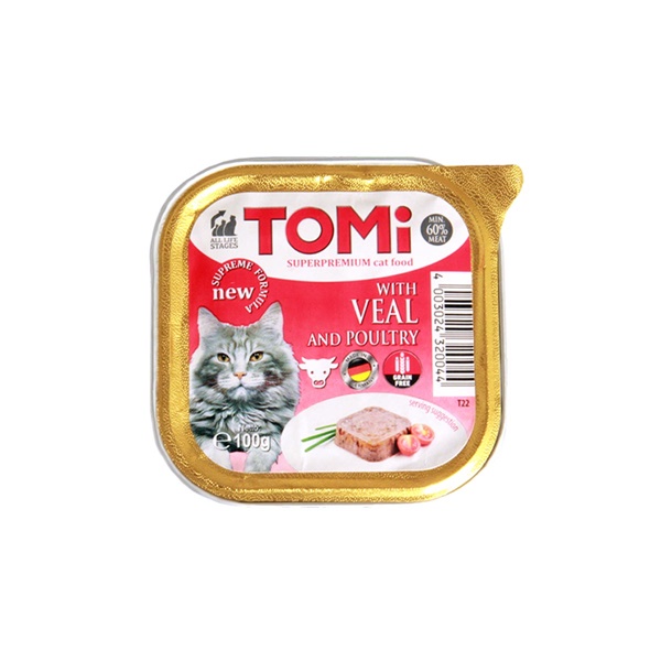 TOMI pašteta za mačke – izrađena je po vrhunskoj formuli posebno dizajniranoj da zadovolji sve potrebe Vašeg ljubimca. Meki i ukusni mesni komadi kuhani u prirodnom soku pomoći će Vašoj mački da ostane zdrava i sretna. TOMI pašteta pruža paletu različitih okusa kako bi Vaša mačka mogla odabrati ono što je najbolje za nju. Pašteta sa škampima donosi okus mora u njenu zdjelicu. Ovaj obrok je u potpunosti bez šećera, umjetnih bojila i pojačivača okusa, no najvažnije je što je bez GMO. U našem proizvodnom procesu ne koristimo antioksidante i konzervanse. Vaša mačka će prrrresti za još!